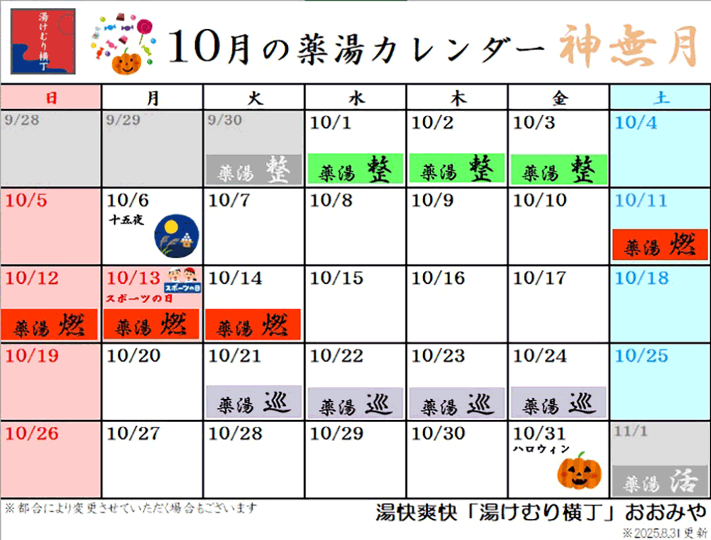 薬湯スケジュールは都合により変更させていただく場合がございます