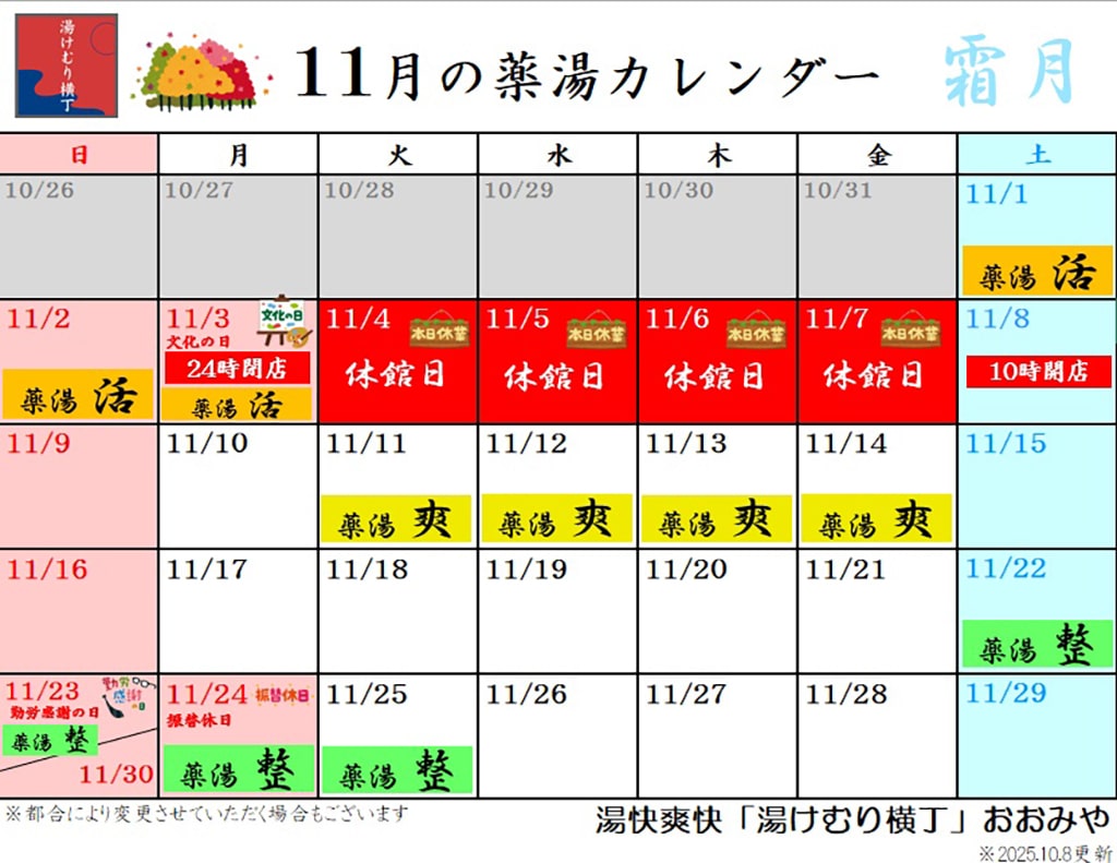 薬湯スケジュールは都合により変更させていただく場合がございます