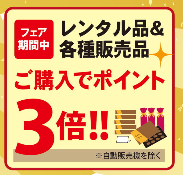 レンタル品・販売品ポイント3倍