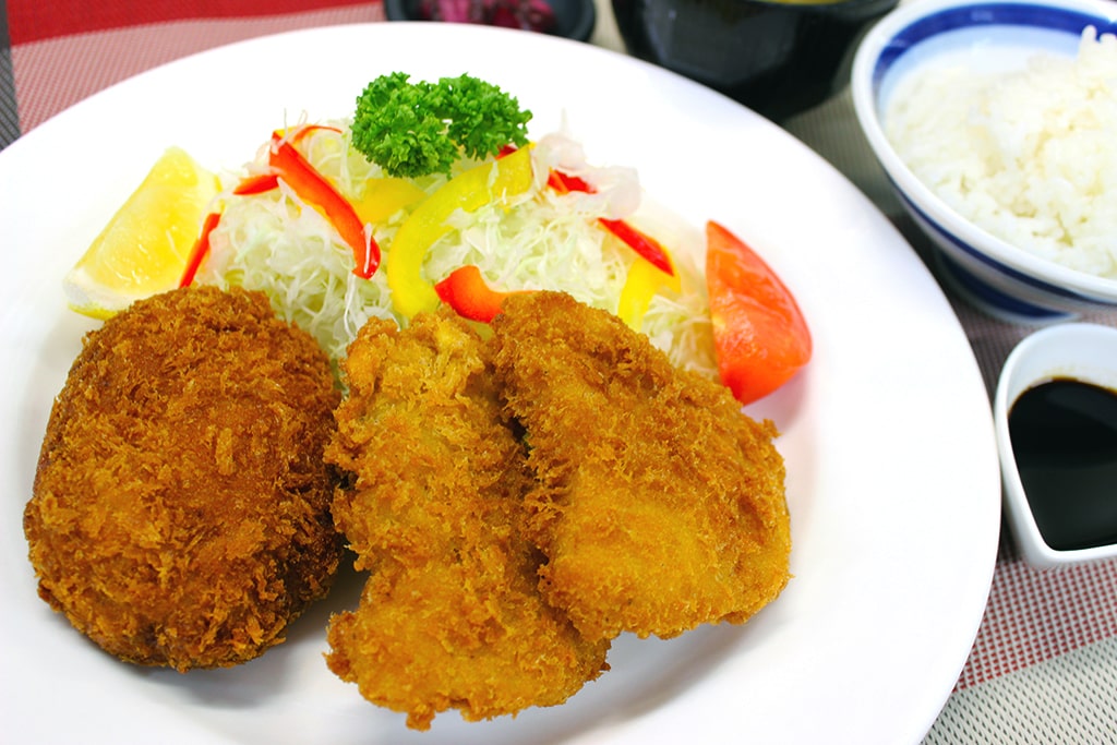 白身魚のフライとメンチカツ定食