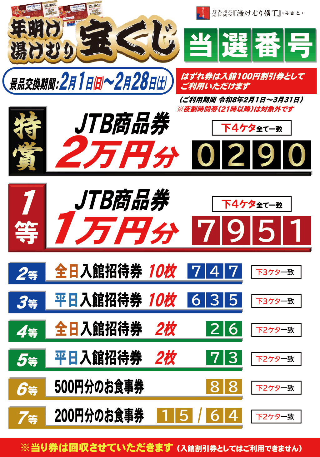 厳正なる抽選の結果♨当選番号が決定いたしました🎉