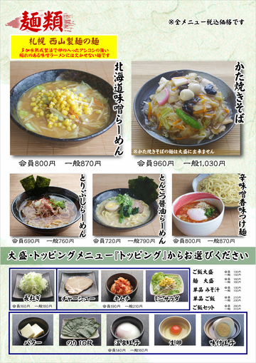 湯快爽快たやのグランドメニューです