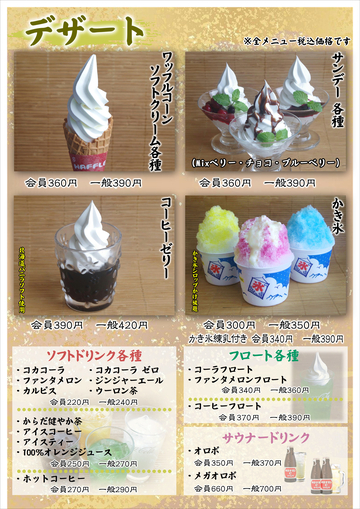 湯快爽快たやのグランドメニューです