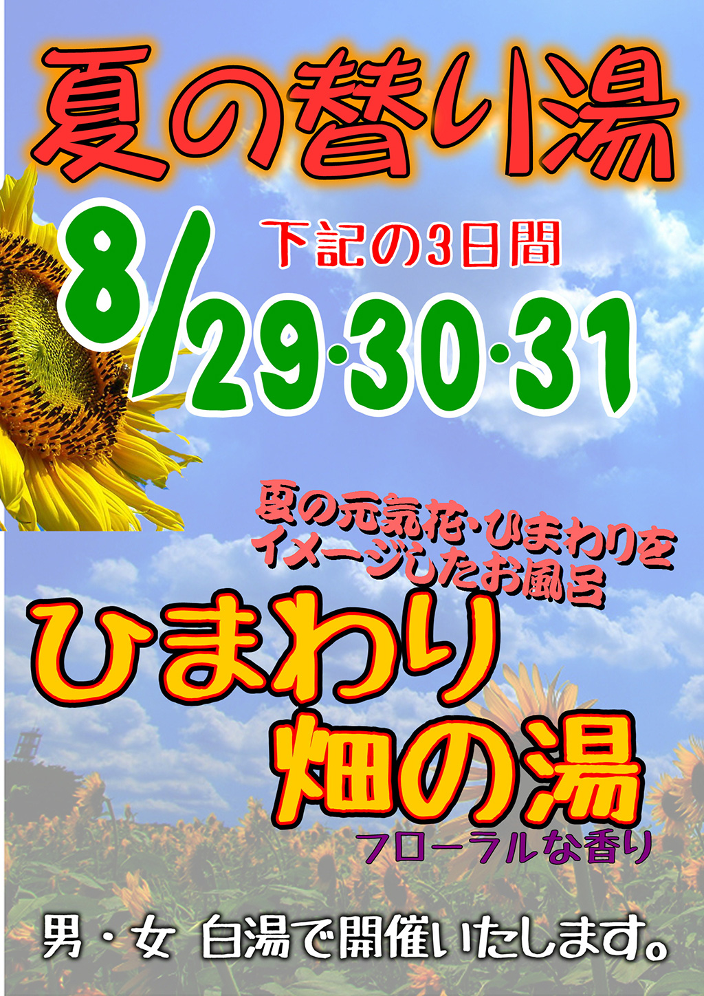 夏の替り湯3Days 8/29(月)~8/31(水)