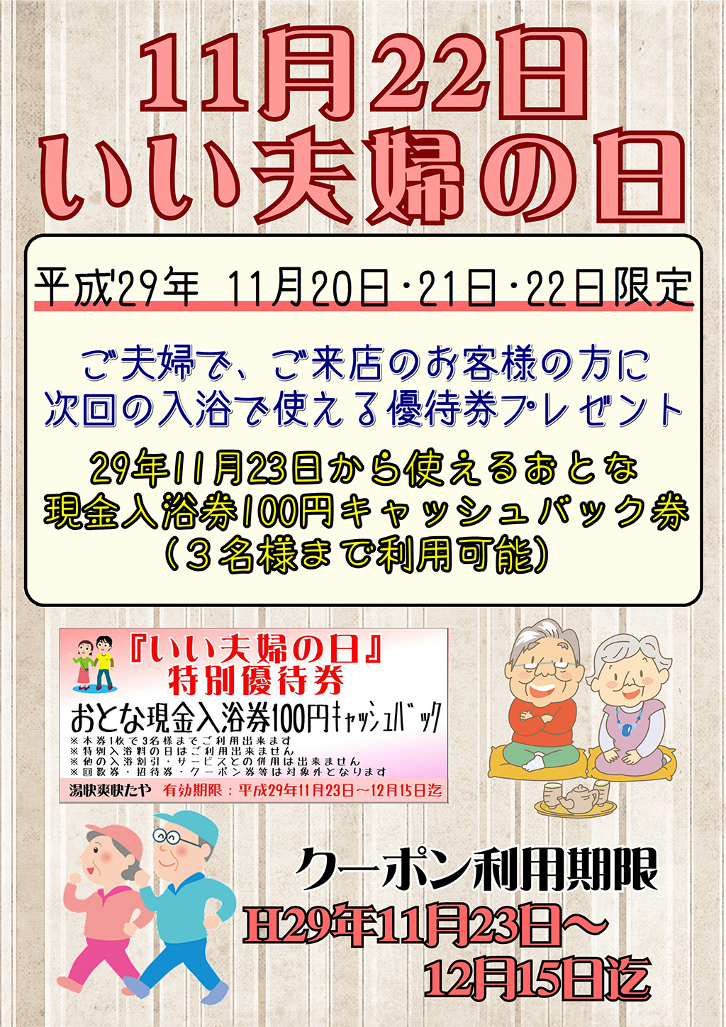 まずは「良い夫婦の日」にご入浴で、優待券をGET!