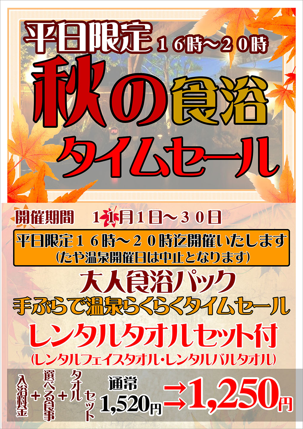 【平日16時~20時限定】秋の食浴タイムセール 11/1(木)~11/30(金)
