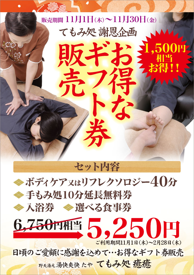 手もみ処『癒癒』 謝恩企画 11/1(木)~11/30(金)