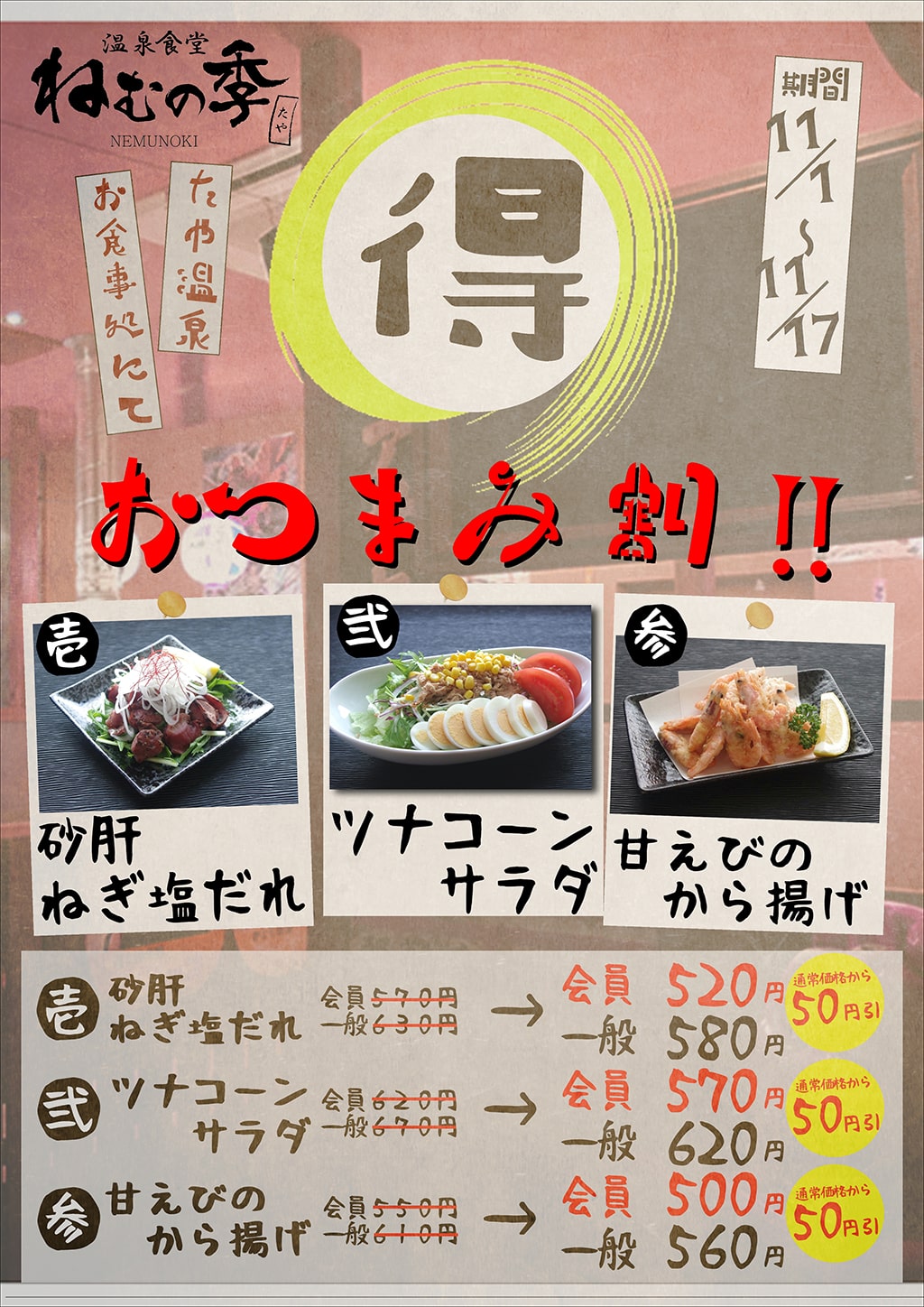 おつまみ3種類が期間限定で特別価格に!(^^)!