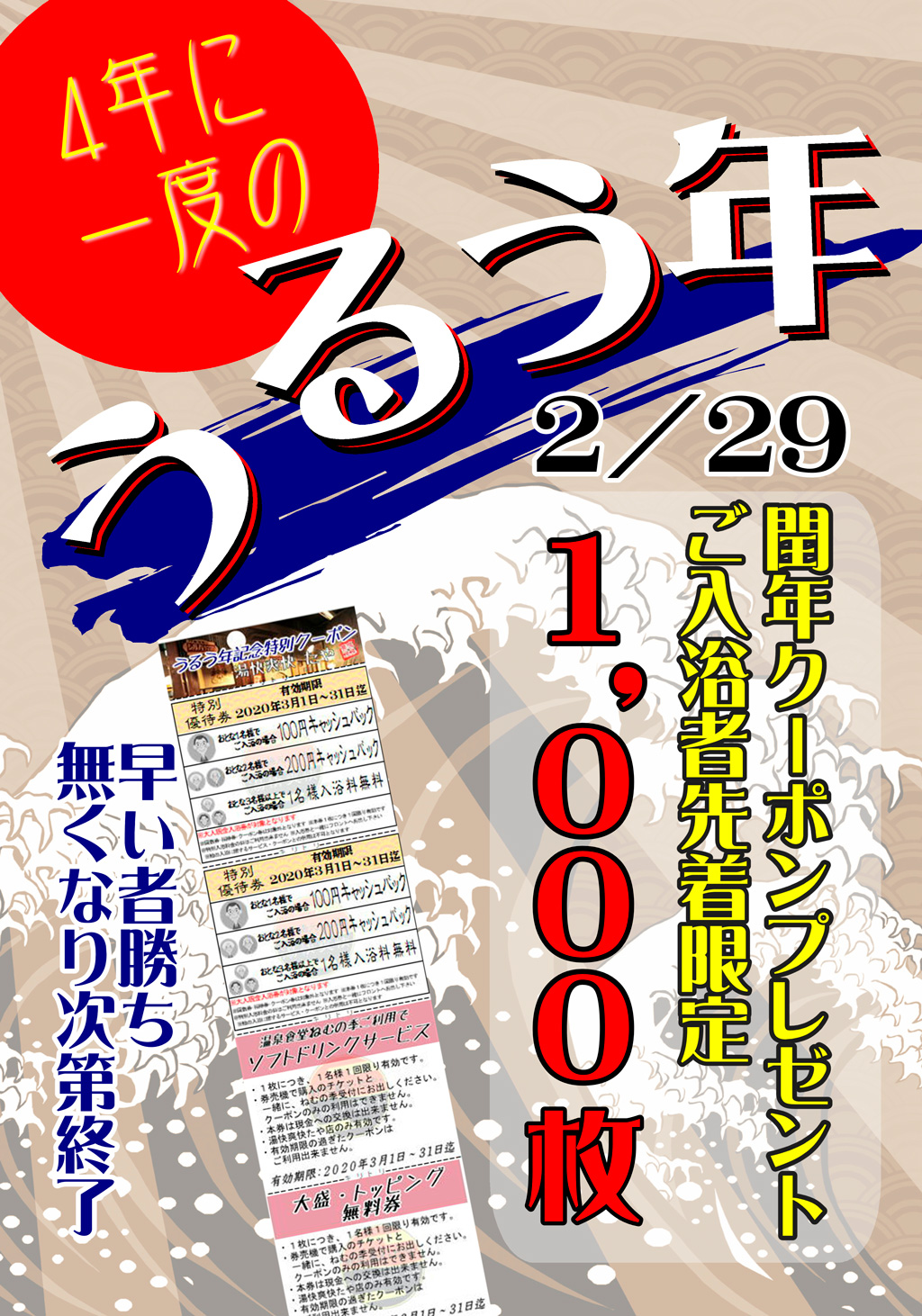 そんな2020年の『うるう年』を記念して、先着限定1,000枚のクーポンを配布いたします!