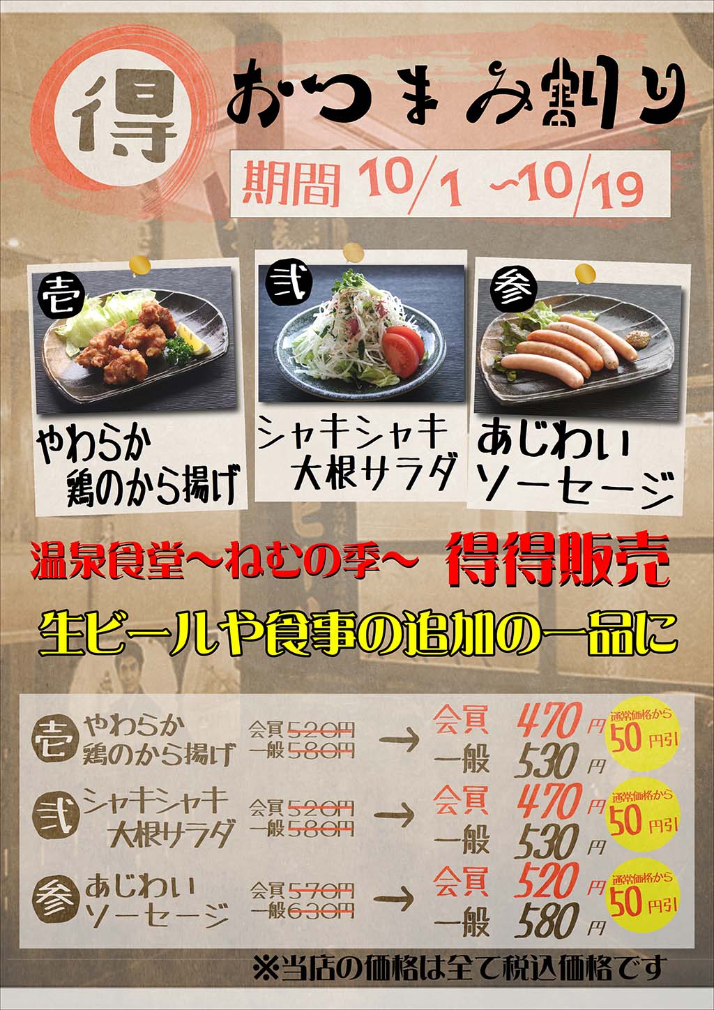 • 食欲の秋ですね♪ 美味しいおつまみをお供に、ご湯るり♨とお過ごしくださいませ♥
