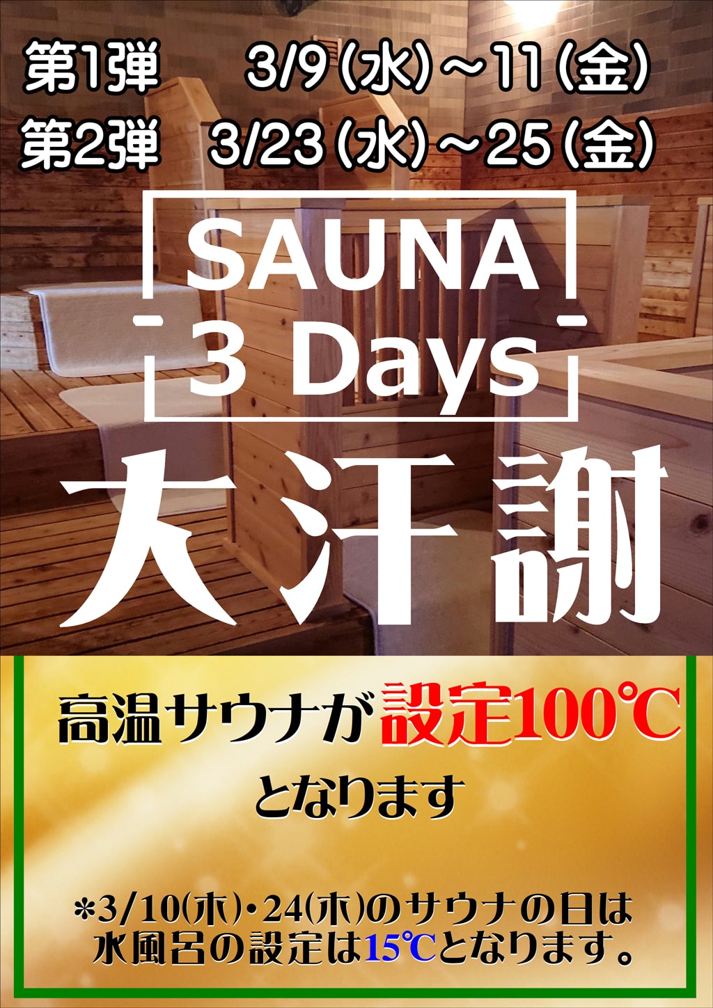 期間中、高温サウナの設定が100℃に!