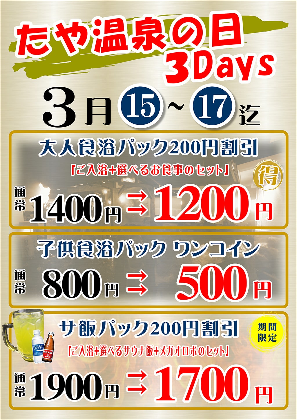 春うらら?のたや温泉を、どうぞごゆっくりと満喫してください。会員様へ♡日頃のご愛顧に感謝の3日間。