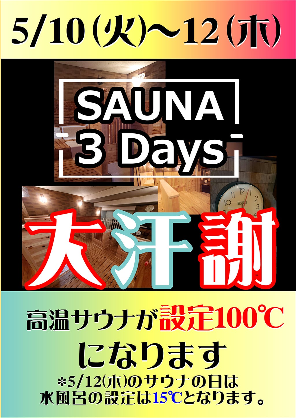 みなさん、ととのっていますか!?サウナで特別な3日間!!