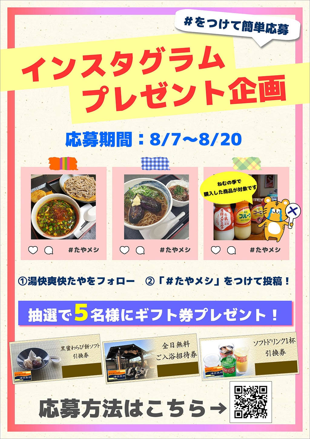 「#たやメシ」を付けて投稿してね!抽選でギフト券が当たる!