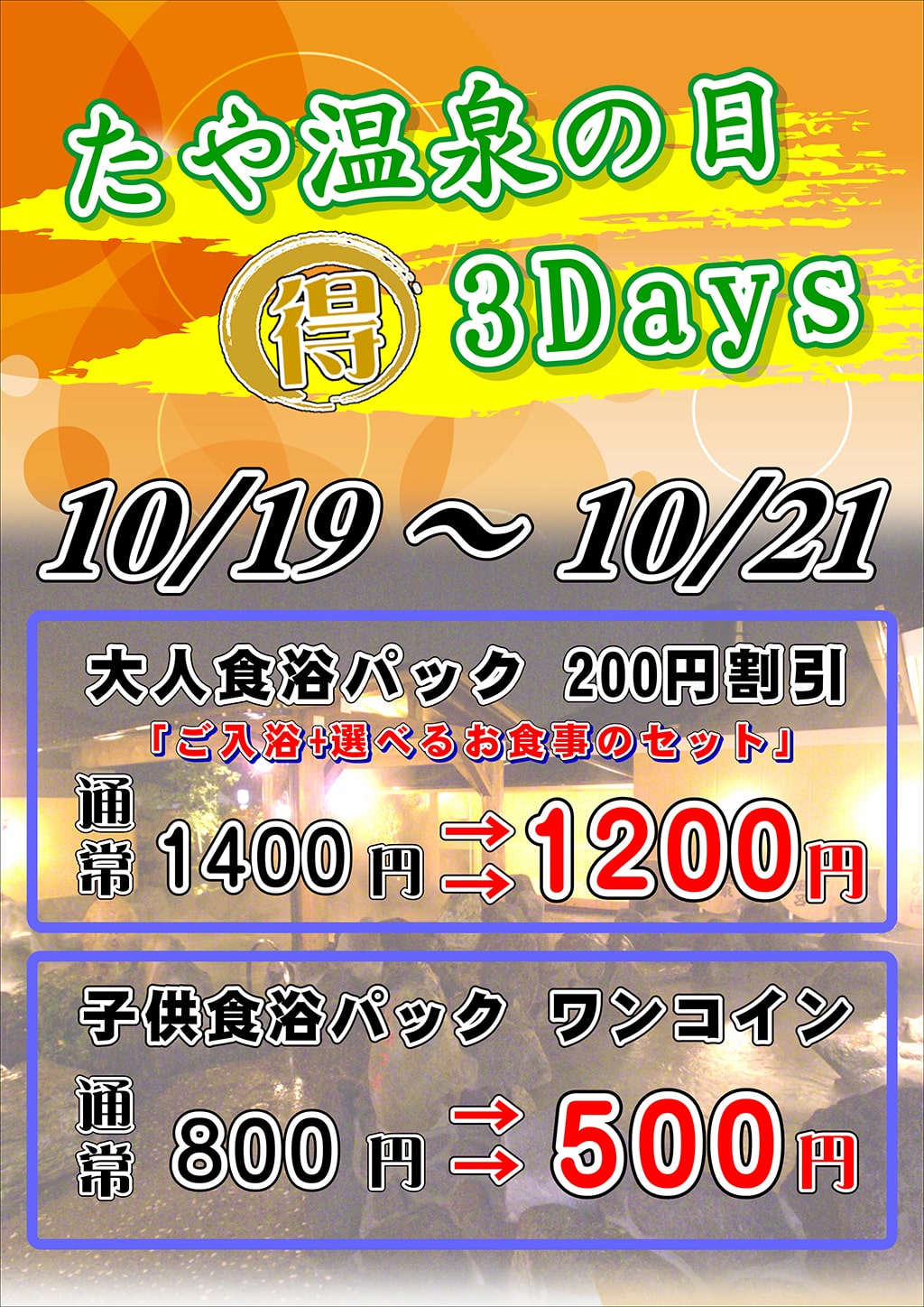 ?1日使える入浴券お好きにお選びいただける御食事券がセットの食浴パックはご利用いただいていますか?