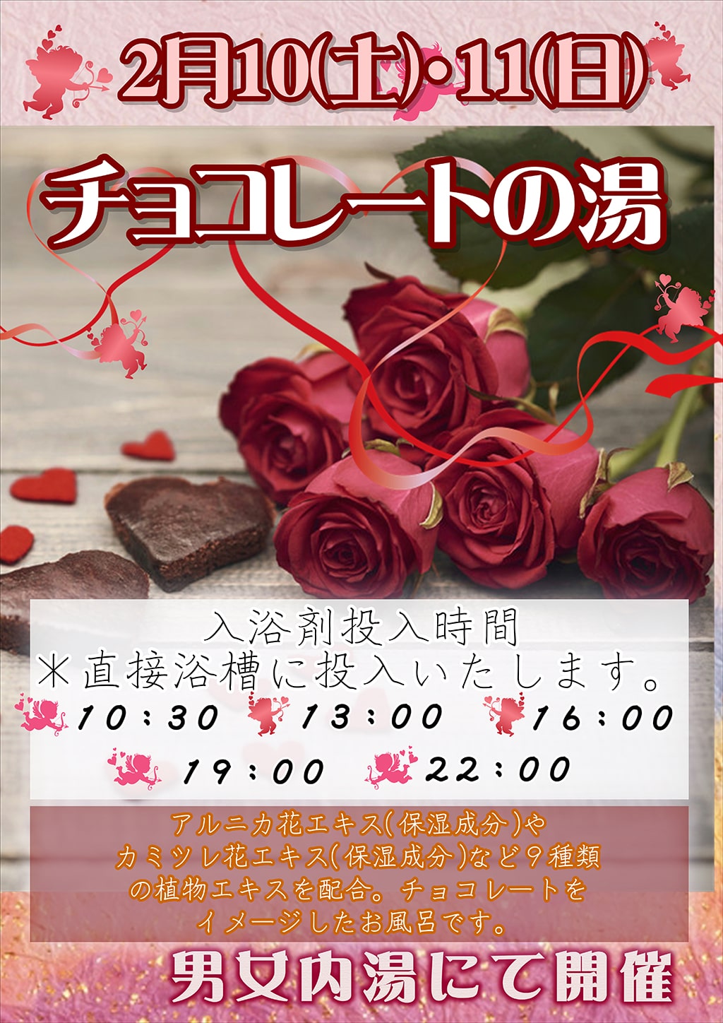 湯快爽快たや、男女とも内湯にて「チョコレートの湯」を開催❤