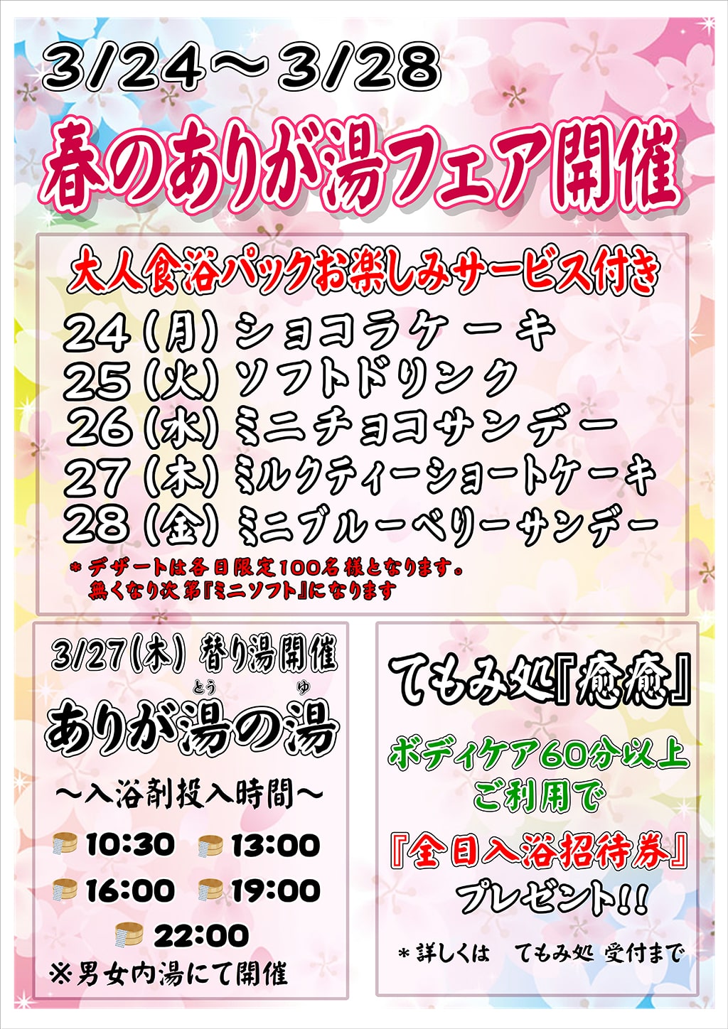 10:00~深夜1:00閉店(入浴最終受付 深夜0:30)