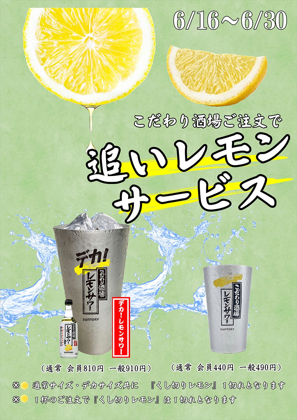 2025年6月5日 / 最終更新日時 : 2025年6月5日 okubo このイベントは終了しました 追いレモンサービス イベント詳細 日付: 2025年6月16 – 30日 カテゴリ: このイベントは終了しました 6/16(月)~6/30(月) マジなレモン🍋でFRESH度ドUP! 📣期間限定! 共有:Tweet