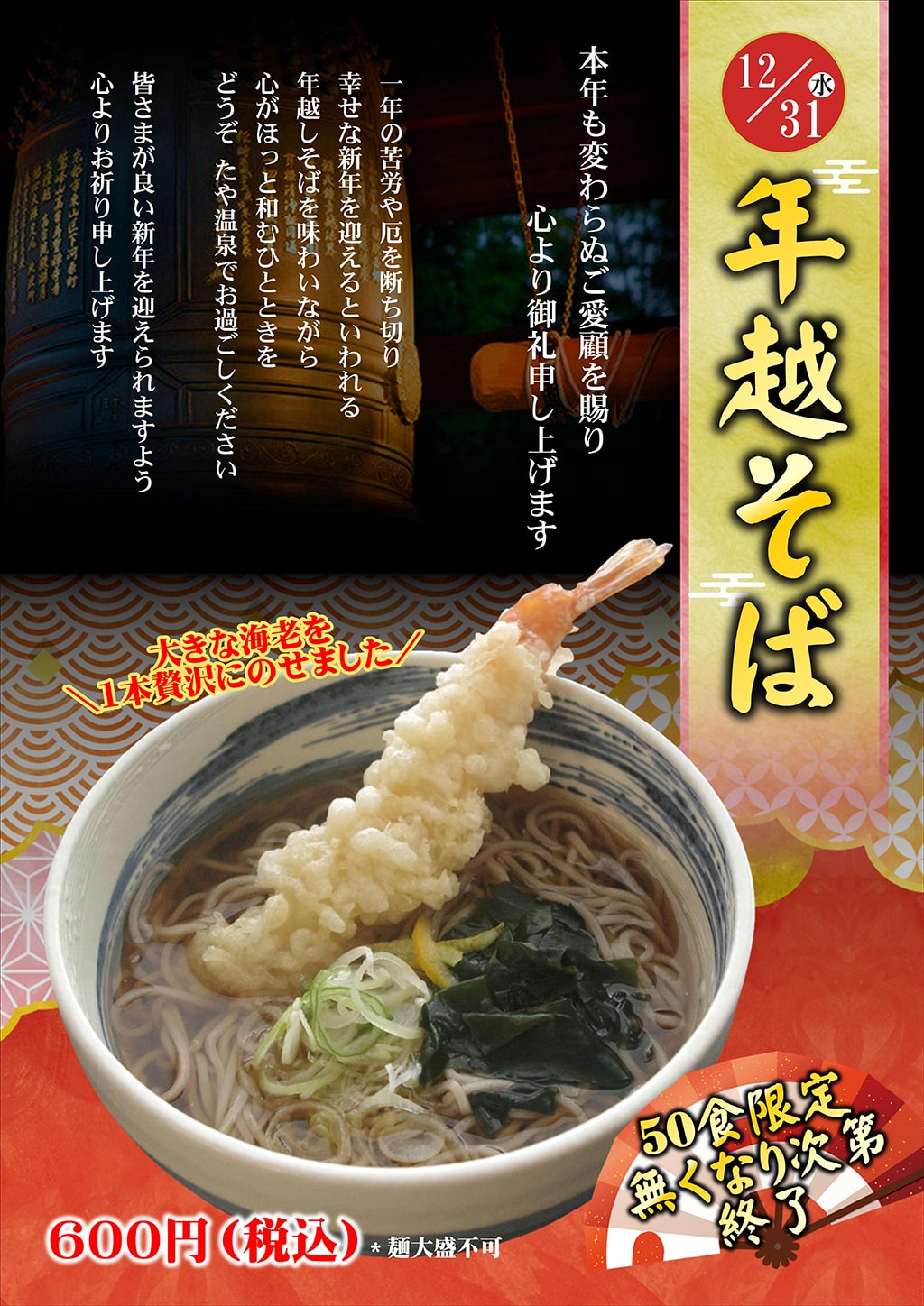1年を締めくくる年越しそばは、どうぞ湯快爽快でお召し上がりくださいませ♨