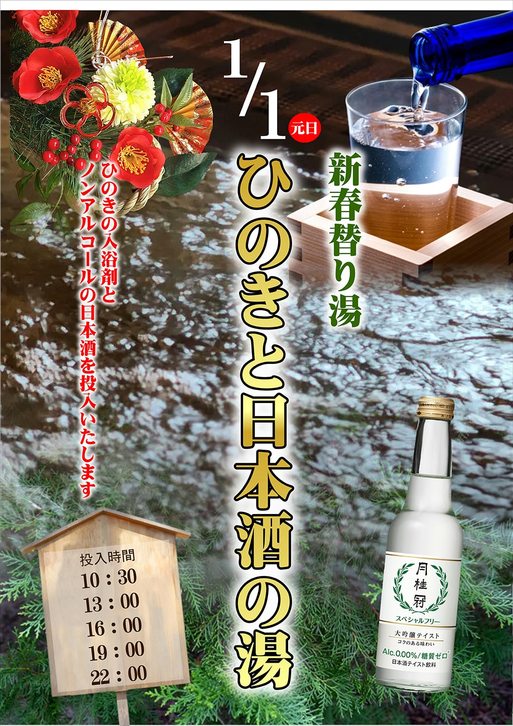 - 1日5回!【日本酒&ひのきの入浴剤】投入時間