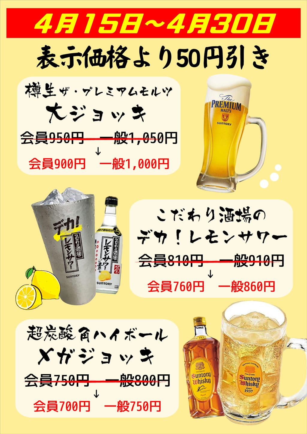 禁断の大ジョッキ50円引き