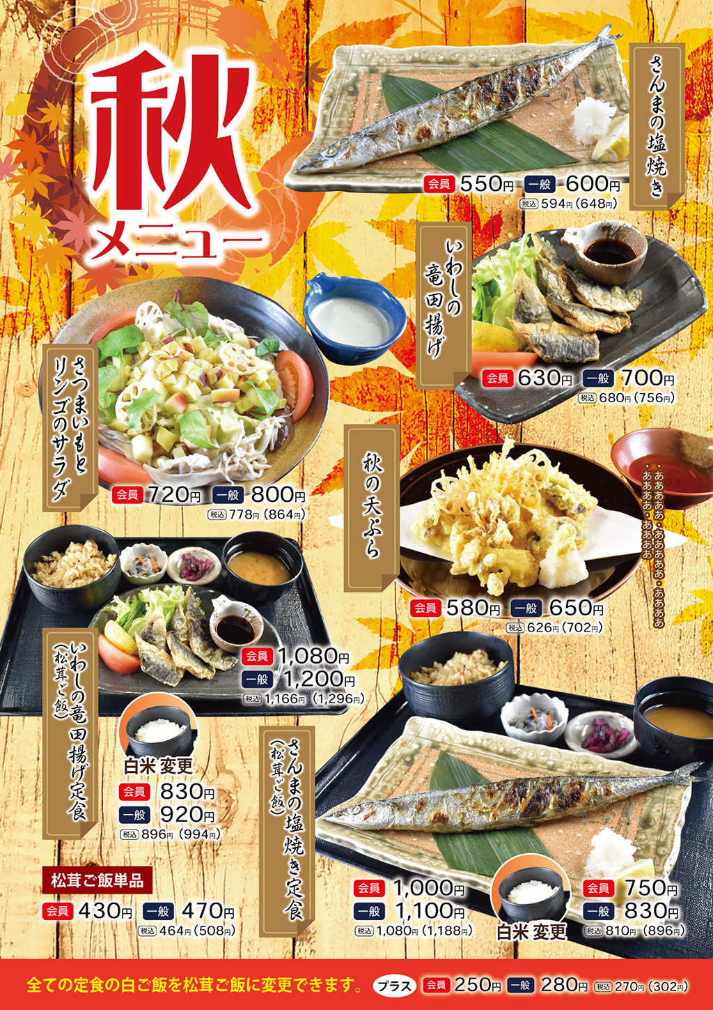 2017年9月6日 / 最終更新日時 : 2017年9月4日 okubo NEWS & TOPICS 季節の逸品:秋メニューのご案内 湯快爽快ざま、秋メニュー 旬の食材を仕入れました! 秋といえば、秋刀魚、いわし、松茸・・・秋ならではの食材をふんだんに使用した彩り豊かな湯快爽快ざまの秋メニュー。 この時期にしか味わえない旬のお料理をどうぞご堪能ください。 秋メニューの詳しいご案内はこちら » 共有: