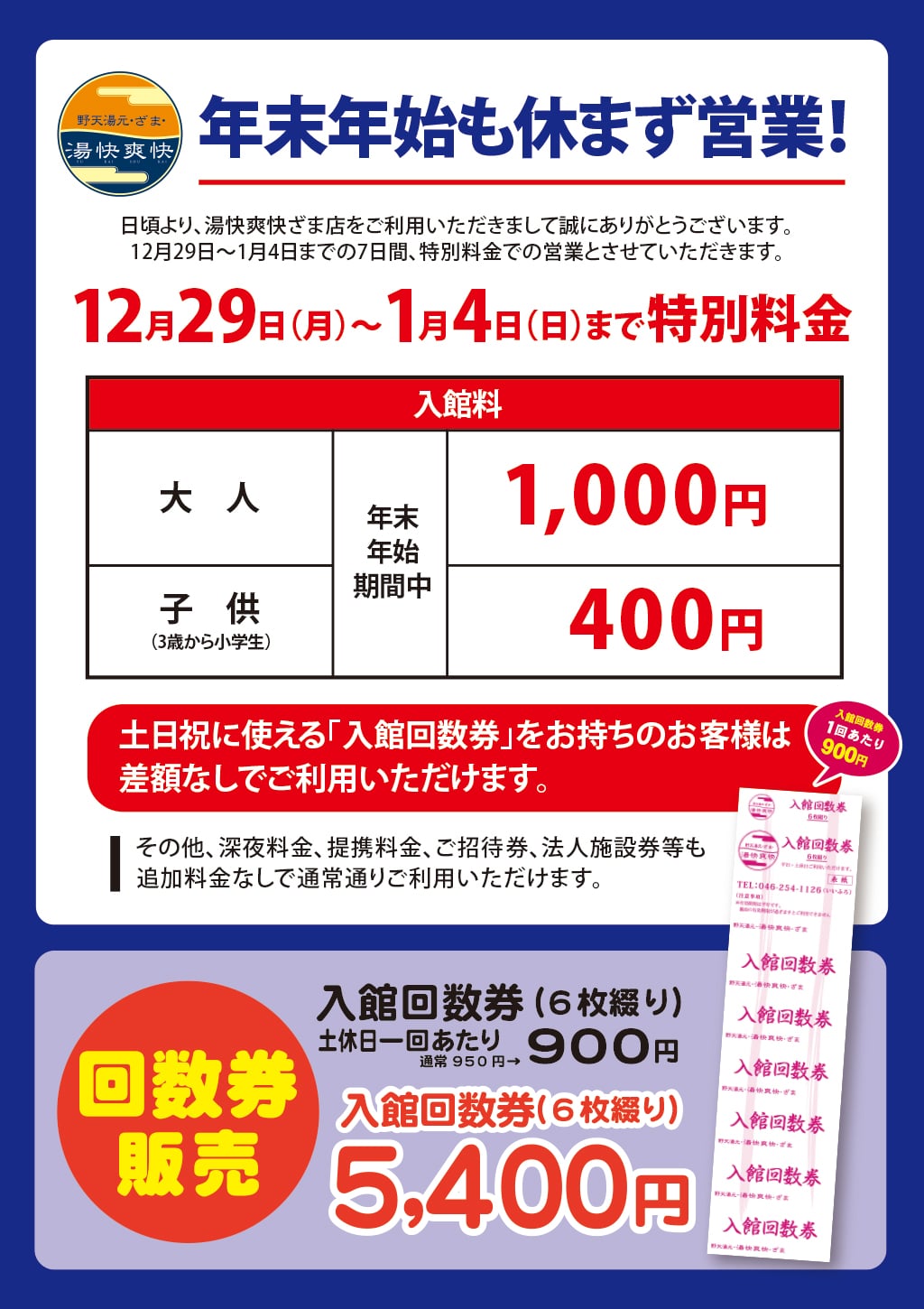 日頃より 野天湯元 湯快爽快ざま をご利用くださいまして、誠にありがとうございます。