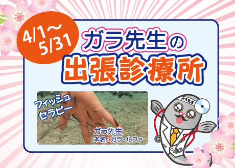 2017年3月21日 / 最終更新日時 : 2018年6月22日 okubo このイベントは終了しました ガラ先生 イベント詳細 日付: 2017年4月1 – 5月31日 カテゴリ: このイベントは終了しました さくらフェア ガラ先生の出張診療所 4/1(土)~9/3(日) 期間限定でガラ先生がやってきます。 人間の肌を健康にするという不思議な魚「ガラ・ルファ」。 ガラが肌の角質をついばむ刺激が新陳代謝を活性化させ、自然治癒力を高めるともいわれ、ドイツなどでは、アトピーなどの皮膚病を治す際に用いる医療行為の一種としても認められています。 ゆっくりと足を浸しながら、むくみ、冷え性、関節痛などの改善にお役立てください。 さくらフェアのイベント一覧はこちら » 共有: