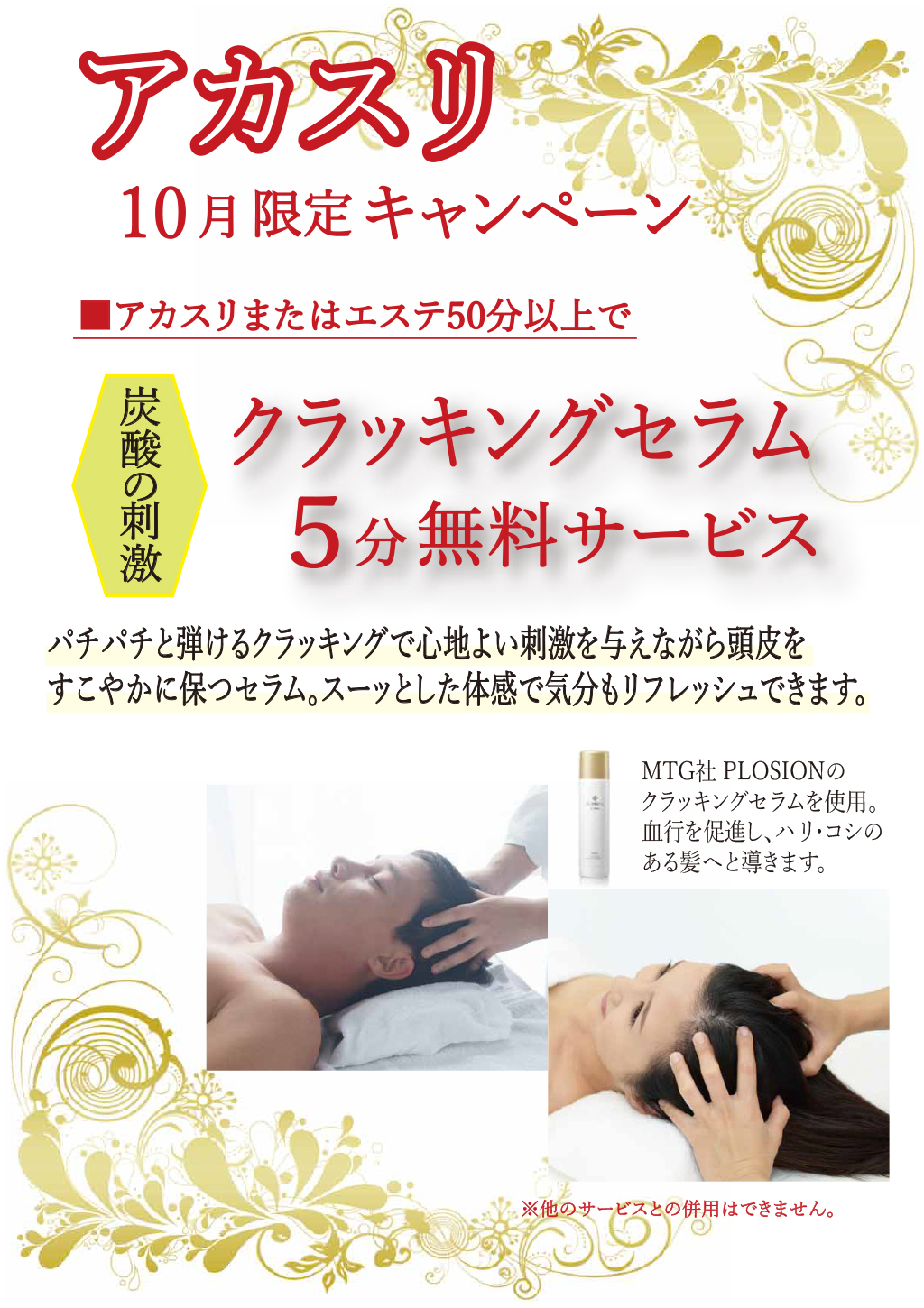 アカスリまたはエステを50分以上ご利用の方に🎁5分間の無料サービスです!